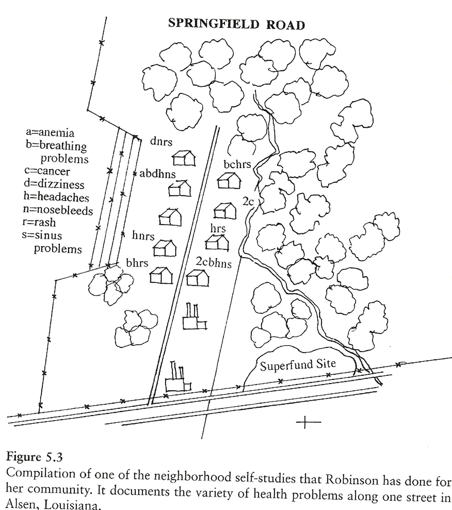 In 1976, strong odors from the Rollins Environmental Services hazardous waste disposal facility began affecting the quality of life across the street in Alsen. People living there were plagued by breathing problems, headaches, chronic fatigue, and spontaneous nose bleeds. Shell, Exxon, and Dow were some of the eleven petrochemical companies using the dump to offload toxic waste from nearby chemical plants. Residents filled a class action lawsuit, McCastle vs. Rollins Environmental Services. This seminal case signaled the beginning of an environmental justice movement where communities affected by industry pollution were empowered to fight back against corporations that neglected their safety and welfare.